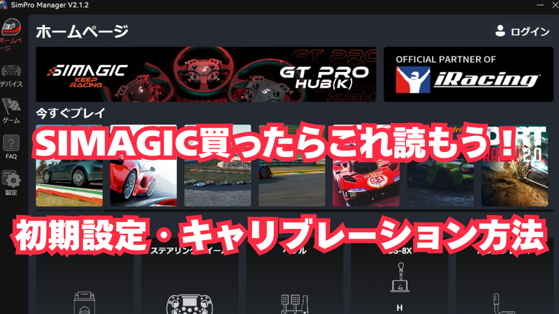 以上がSIMAGIC製品の初期設定となります。シム機材は複雑な機械となっておりますので、せっかく買ったのに繋がらない、動きがおかしいと思ったときは焦らずまずは再接続やキャリブレーション等を試してみてください。