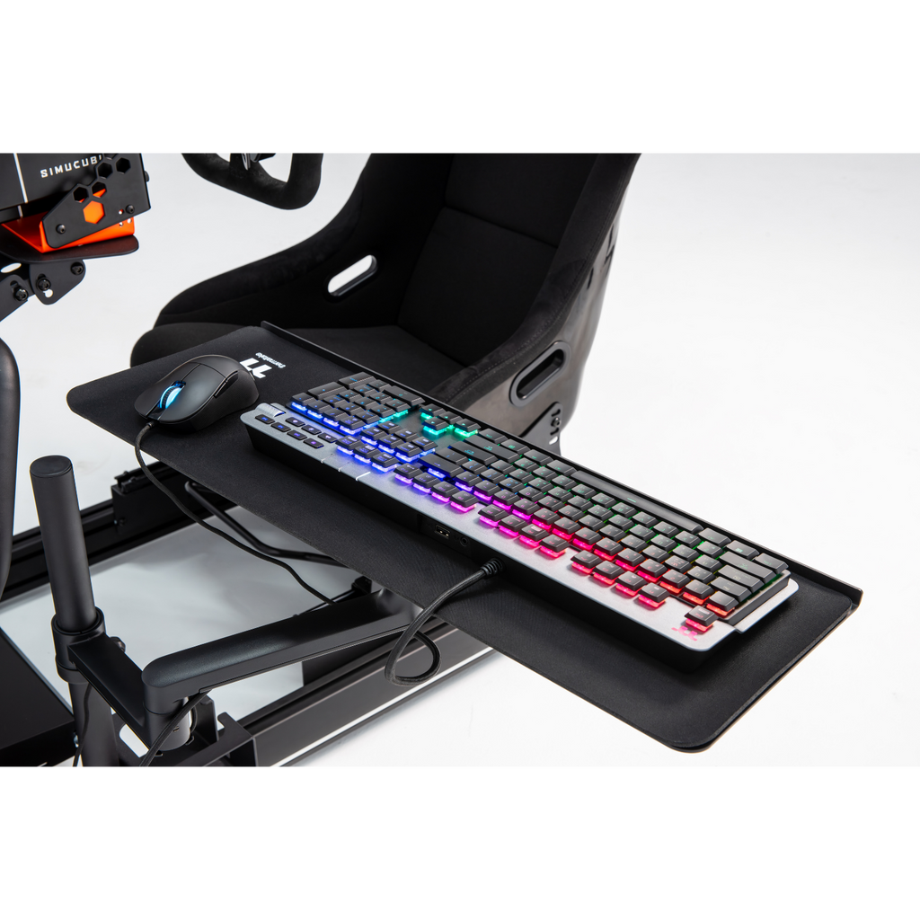 シミュレーター用キーボード・マウストレーは、ワークスペースを拡張する実用的なアクセサリーです。自宅での作業、オフィスワーク、ゲームプレイまで幅広いシーンに対応し、キーボードとマウスを安定して配置できる快適な操作環境を提供します。人間工学に基づいた設計により、多方向の角度調整が可能。使用者のタイピング姿勢や視線に合わせて細かくポジションを調整できるため、手首への負担を軽減し、長時間使用時の疲労を抑えます。 作業性と快適性を両立した、シミュレーター環境に最適な拡張オプションです。
